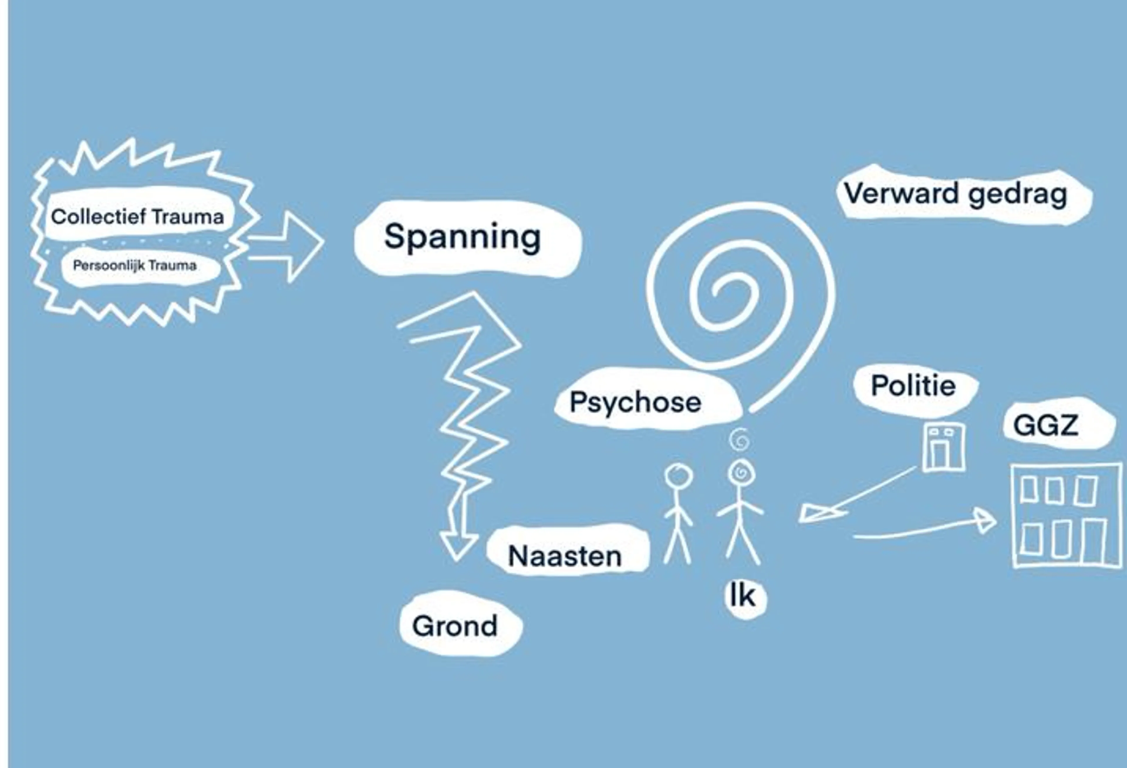 Jeroen weet dat hij door dat besluit niet meer psychotisch hoeft te worden. “En daarmee is mijn verhaal heel anders dan wat de reguliere zorg vaak brengt. Het ging er bij mij om dat ik me bewust moest worden van het trauma in het gezin. Want alle problemen die je in je hoofd niet opgelost krijgt, zijn diepere problemen die te maken hebben met een onverwerkt verleden of pijnlijke gebeurtenissen. Als je daarover praat, zakt de spanning en wordt het risico op een psychose kleiner.”